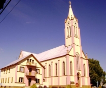 A Igreja foi inaugurada em 18 de novembro de 1939 em estilo românico, com reproduções de pinturas renascentistas da via-sacra nas paredes internas e uma torre de 30 metros de altura, construída em 1954..